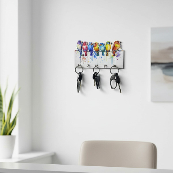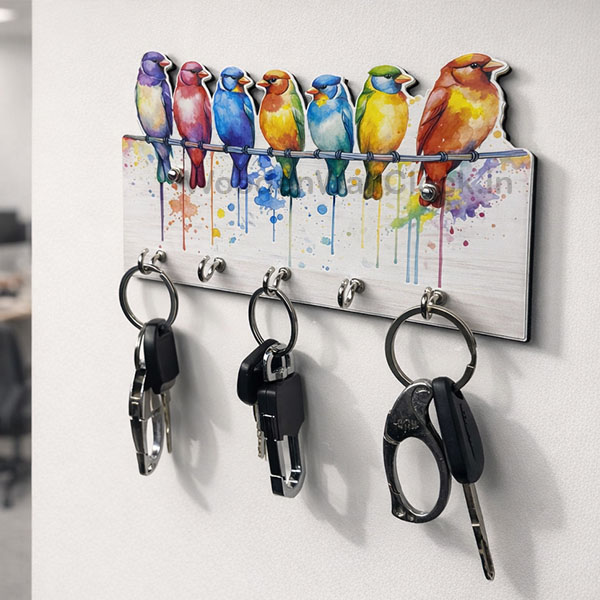 Chidiya Keystand Wooden Printed With 2 Wall Sticker Free| Size 6x8inch