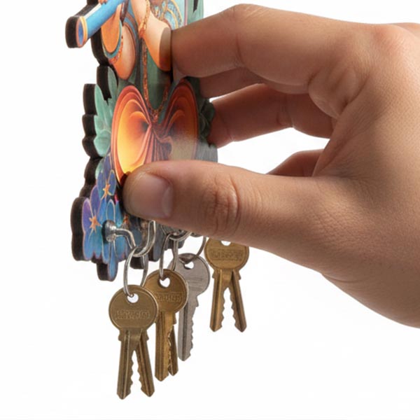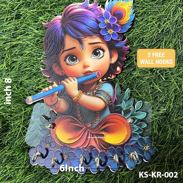 Uv Printed 5mm Cute Baby Krishna Wooden Key Holder with Includes 2 FREE Self-Adhesive Wall Hooks | KS-KR-002